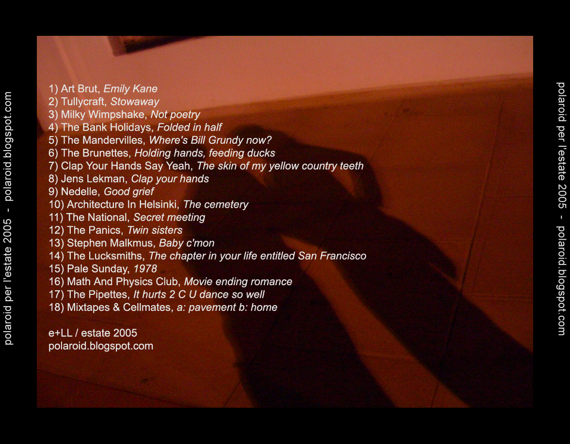 18) Mixtapes & Cellmates, a: pavement b: home - Tra i Radio Dept. più acerbi e qualcosa di ancora più nordico e assolato. Sul finale dell'estate è tutto saturo di feedback, un intrico di graffi. Resta, in mezzo, una melodia. Tuttora limpida.